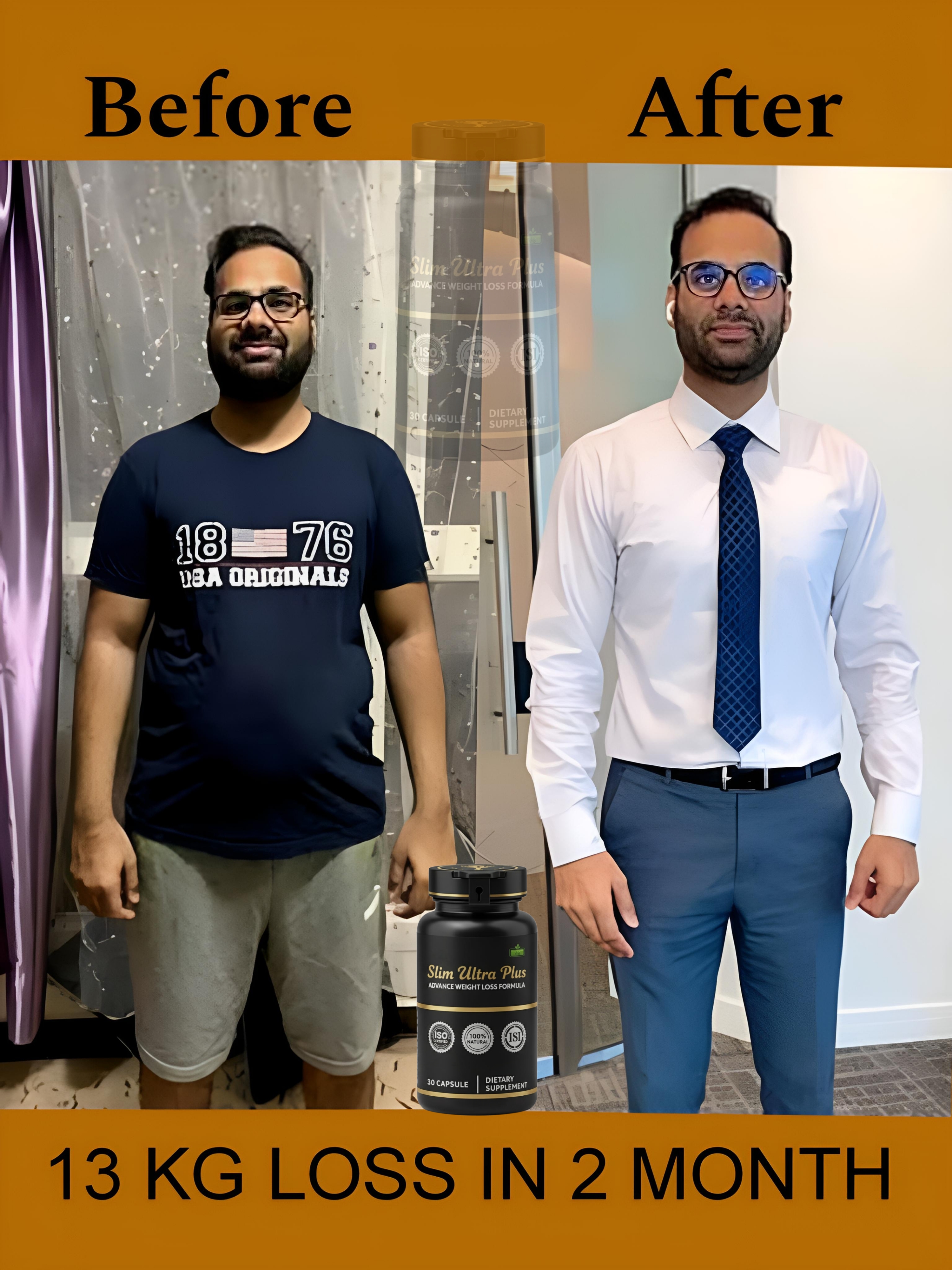 મારા મિત્ર, જે નવી દિલ્હીના એક મેડિકલ સેન્ટરમાં કામ કરે છે, તેણે એકવાર ફેસબુક પર પોસ્ટ કર્યું હતું કે તે રસ ધરાવતા લોકોને નવા વજન ઘટાડવાના કાર્યક્રમ (SLIM ) ના પરીક્ષણમાં ભાગ લેવા આમંત્રણ આપી રહ્યો છે. હું ખૂબ જ ઉત્સાહિત હતો કારણ કે આ ઉત્પાદન મારી બધી સમસ્યાઓને કાયમ માટે દૂર કરી રહ્યું હોય તેવું લાગતું હતું. બહુ વિચાર્યા વગર, હું સંમત થઈ ગયો. પાંચ દિવસ પછી મને કેપ્સ્યુલ્સનું પેકેટ મળ્યું, જેના પર SLIM ULTRA PLUS લખ્યું હતું. આયુર્વેદનું વિશિષ્ટ ઉત્પાદન. થોડા અઠવાડિયામાં જ અદ્ભુત પરિણામો જોયા ત્યારે હું ખરેખર આશ્ચર્યચકિત થઈ ગયો. મેં ૧૪ કિલો વજન ઘટાડ્યું અને મારી કમર ૩૪ થઈ ગઈ. મને મારી આંખો પર વિશ્વાસ નહોતો આવતો. મારા મિત્રએ મને કહ્યું હતું તેમ મેં કાર્યક્રમ શરૂ કરવાના પહેલા અને પછીના ફોટા મોકલ્યા, અને તેણે મને કહ્યું કે આ પરિણામો સામાન્ય છે અને પરીક્ષા આપનારા 95% લોકોએ સમાન પરિણામો મેળવ્યા. આ ખરેખર અદ્ભુત છે!